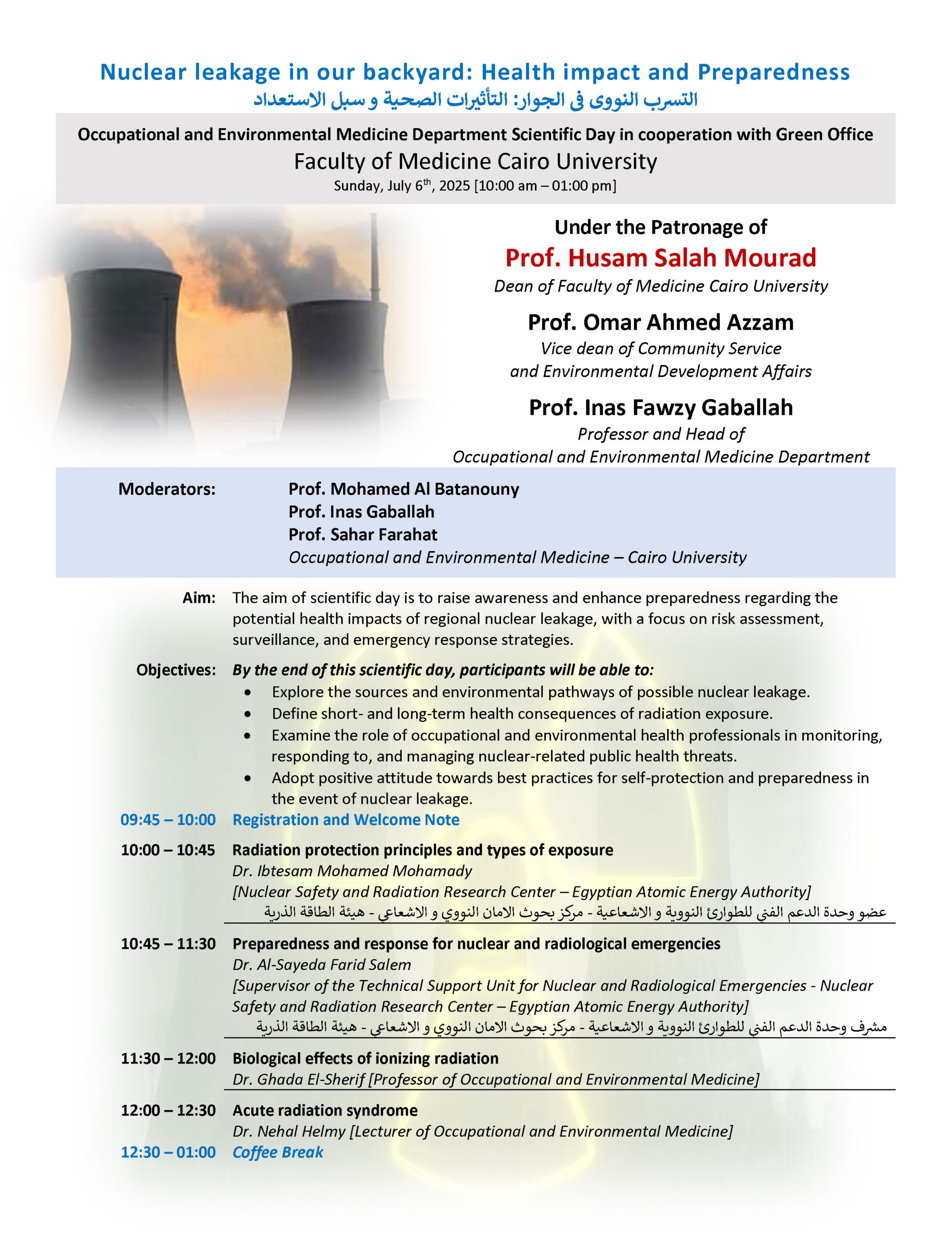 نظمت كلية طب قصر العيني اليوم العلمي لقسم الأمراض الصدرية يوم 25 نوفمبر 2025،